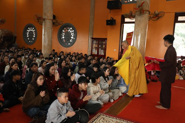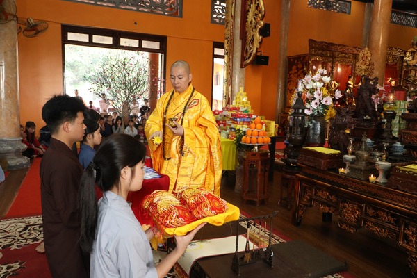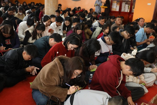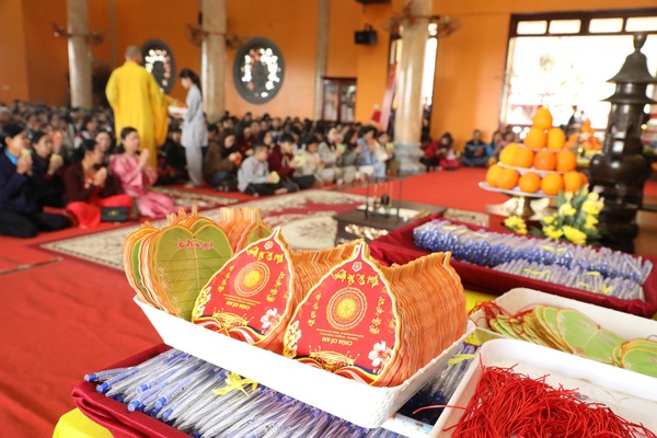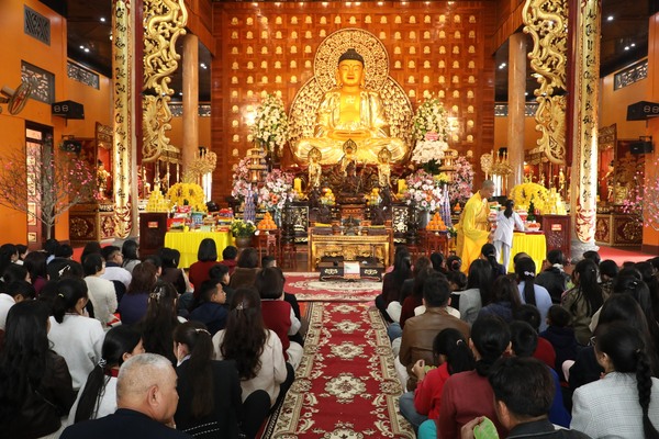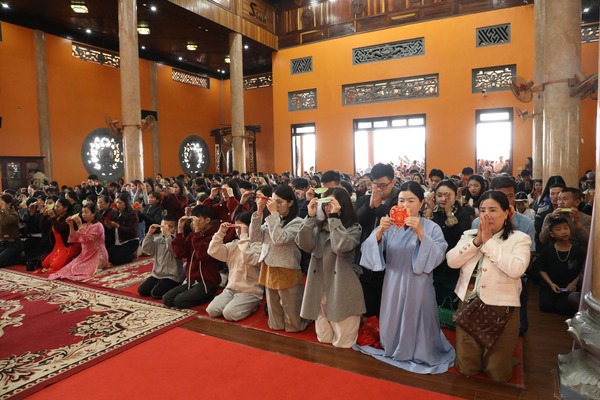 Trong tiếng chuông chùa ngân vang, đại chúng cùng niệm Phật cầu gia hộ, lắng nghe lời sách tấn đầu xuân và phát nguyện tinh tấn trên con đường tu học. Từng nét mực được viết xuống với sự trân trọng và tỉnh thức, gửi gắm ước nguyện về một năm mới an lành, trí tuệ và viên mãn.