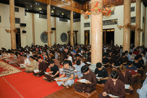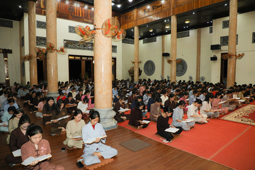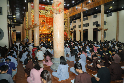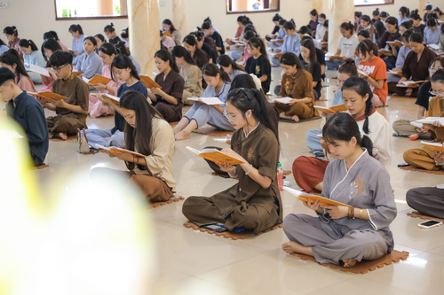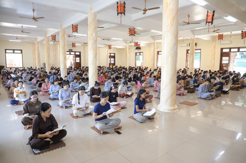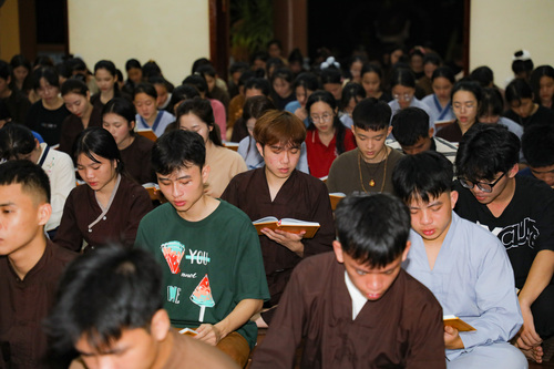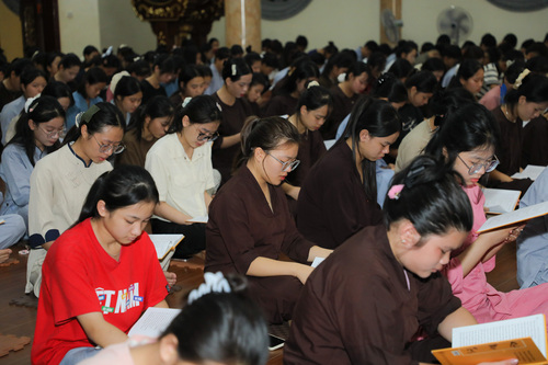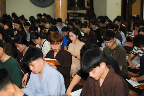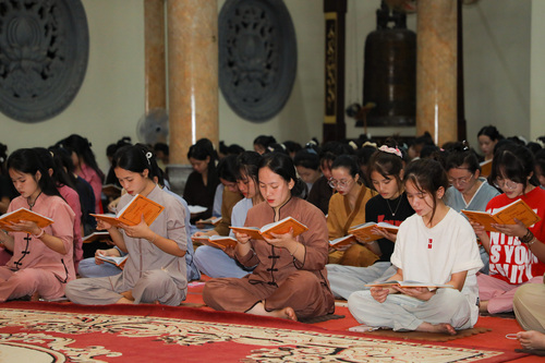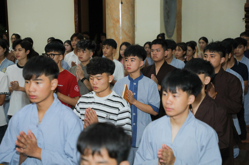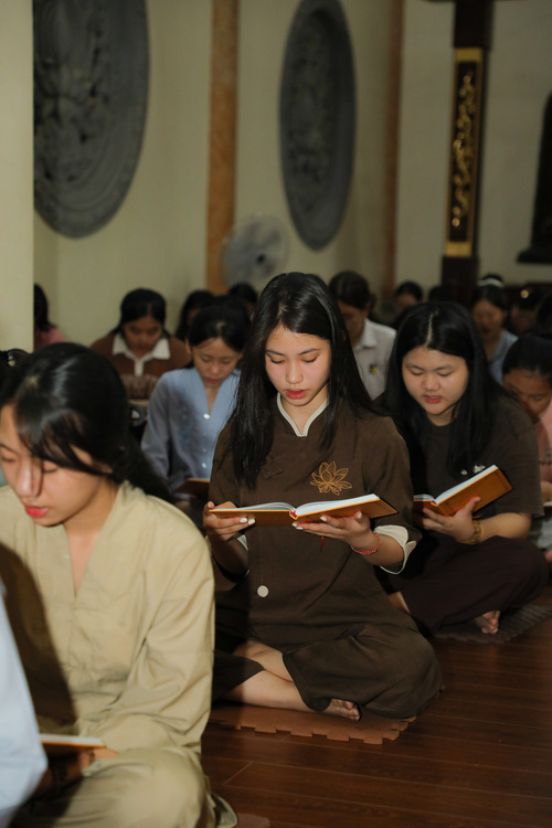 4h30 sáng ngày 10/8/2025 , khi tiếng chuông chùa ngân vang giữa làn sương, các bạn khoá sinh đã trở về chánh điện trong không khí trang nghiêm. Từng lời kinh, tiếng niệm Phật là lời nguyện cầu thành kính dâng lên cha mẹ, mong cầu bình an cho đấng sinh thành hiện tiền và siêu thoát cho những người đã khuất.