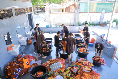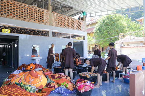 Sau đó, những bước chân nhẹ nhàng nối tiếp nhau trong giờ chấp tác, mỗi động tác quét sân, nhặt lá đều trở thành một hành động hiếu hạnh, một lời tri ân thầm lặng gửi đến đấng sinh thành từ những điều giản dị nhất.