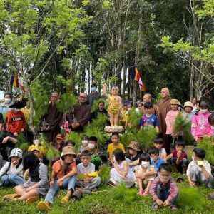 Hơn 100 em thiếu nhi trồng cây xanh mừng Phật đản