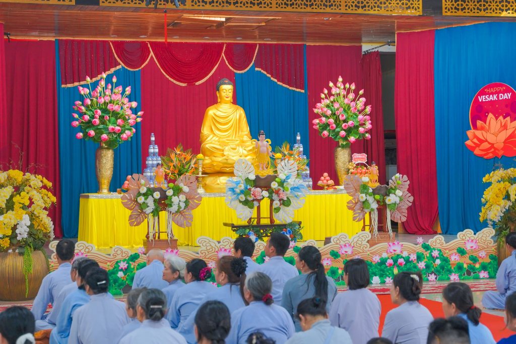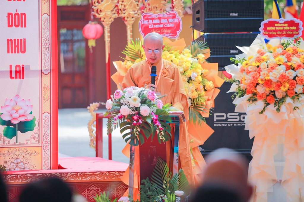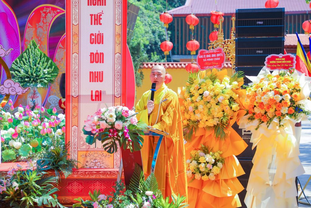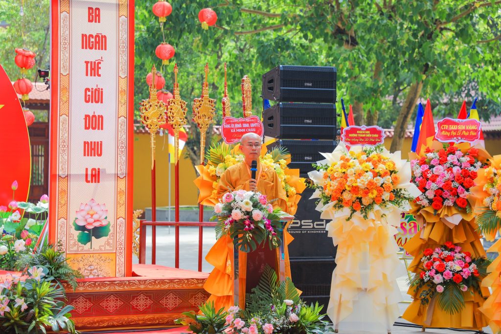 Tại buổi lễ, thay mặt chư Tôn đức hiện diện, Đại đức Thích Tâm Thành – Trưởng ban tổ chức đã có đôi lời phát biểu và chia sẻ đến hội chúng nhân ngày khánh đản. Đại đức đã nói sơ lược về cuộc đời và hạnh nguyện cao thượng của Đức Phật Thích Ca Mâu Ni và những điều cần làm của người con Phật cần phải thực hiện trong mùa Phật đản : ”Việc chúng ta tri ân đức Phật bằng việc học hiểu và hành trì lời Phật dạy, sống trọn vẹn và an lạc trong từng phút giây với chánh niệm và tỉnh thức; cũng như duy trì mạng mạch giáo pháp, hoằng pháp lợi sinh giúp cho nhiều người biết đến đạo Phật, nhận được sự lợi ích mà giáo pháp mang lại”.
