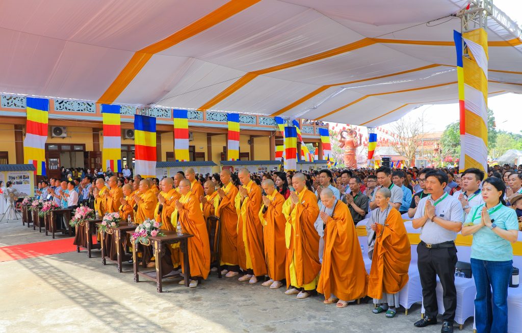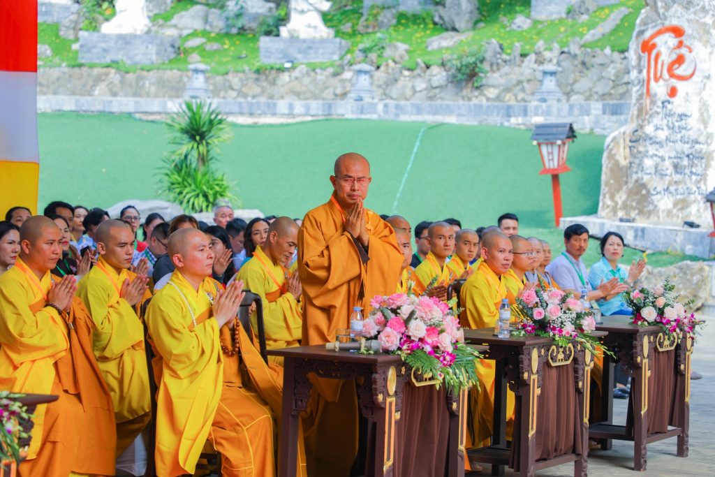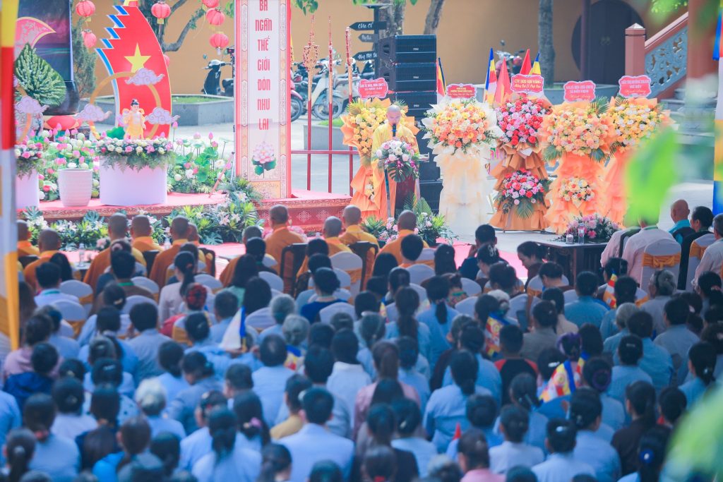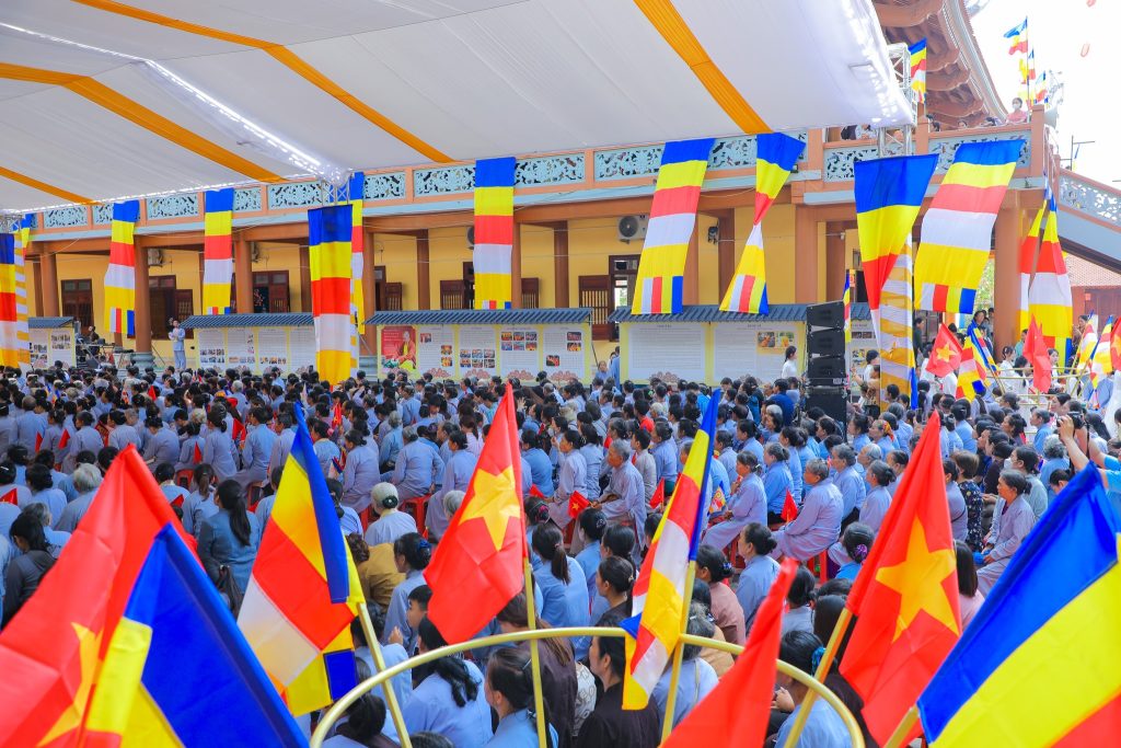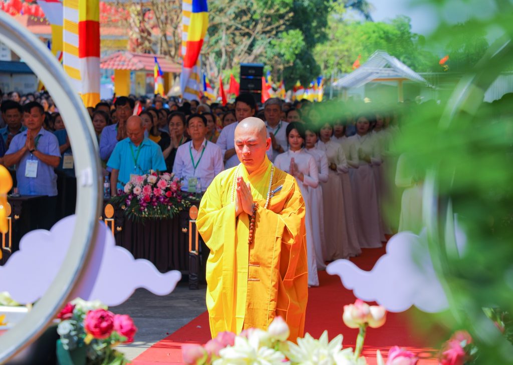 Tại buổi lễ, thay mặt chư Tôn đức hiện diện, Đại đức Thích Tâm Thành – Trưởng ban tổ chức đã có đôi lời phát biểu và chia sẻ đến hội chúng nhân ngày khánh đản. Đại đức đã nói sơ lược về cuộc đời và hạnh nguyện cao thượng của Đức Phật Thích Ca Mâu Ni và những điều cần làm của người con Phật cần phải thực hiện trong mùa Phật đản : ”Việc chúng ta tri ân đức Phật bằng việc học hiểu và hành trì lời Phật dạy, sống trọn vẹn và an lạc trong từng phút giây với chánh niệm và tỉnh thức; cũng như duy trì mạng mạch giáo pháp, hoằng pháp lợi sinh giúp cho nhiều người biết đến đạo Phật, nhận được sự lợi ích mà giáo pháp mang lại”.