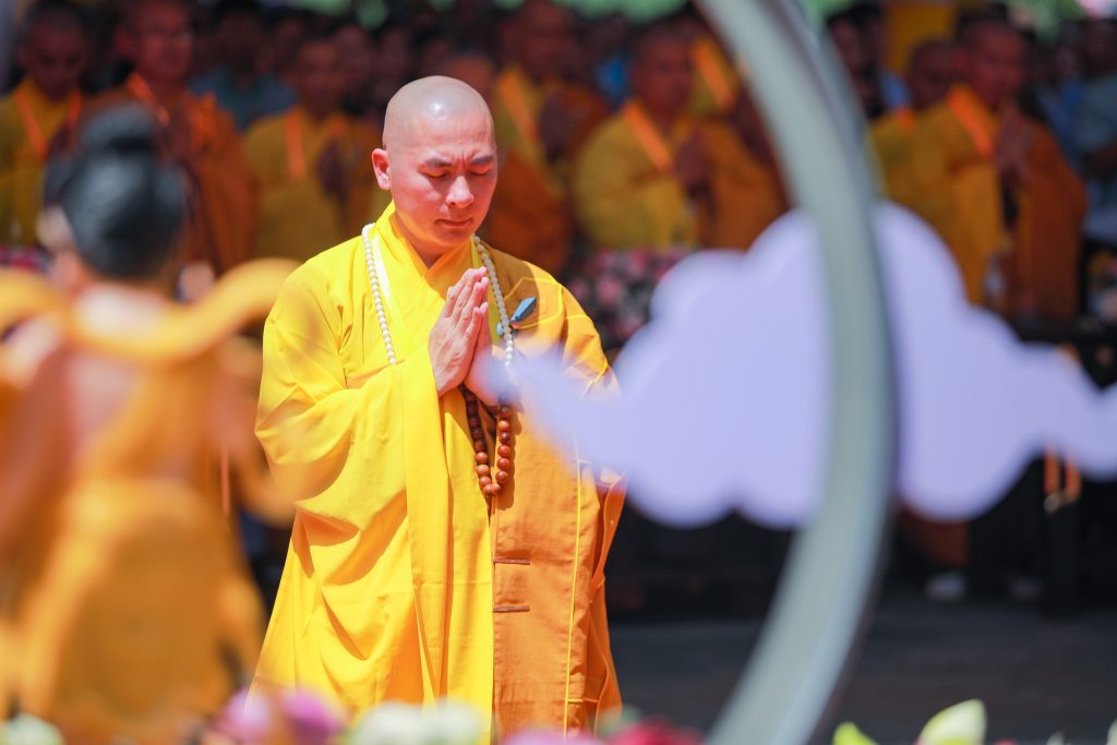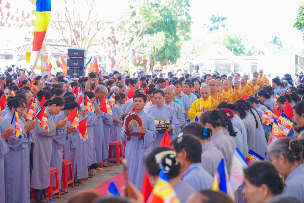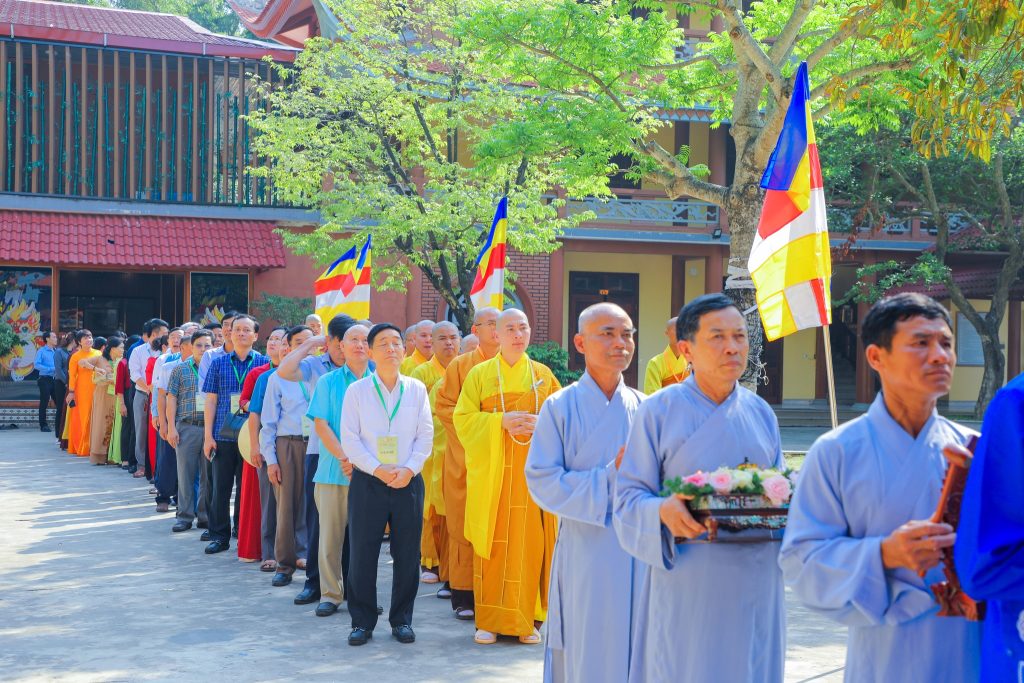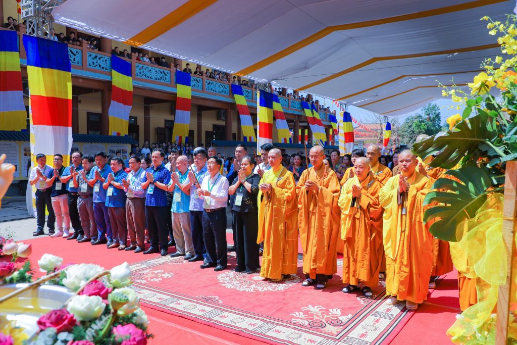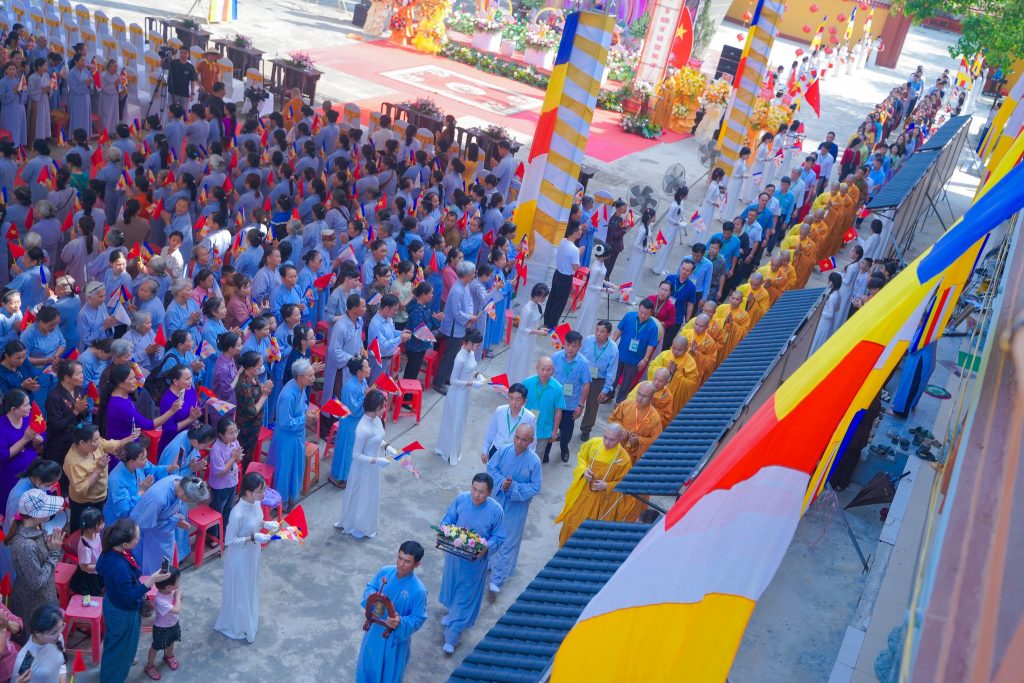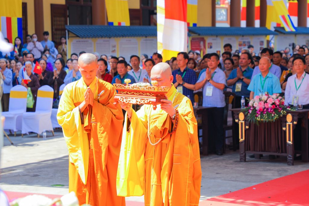 Vào lúc 08h30, Ban nghi lễ trang nghiêm cung nghinh chư Tôn đức Tăng quang lâm lễ đài, cử hành Đại lễ Phật đản.