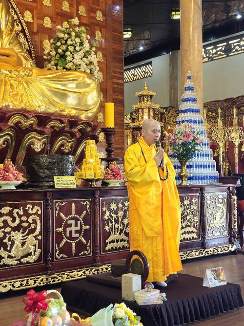 Trong buổi lễ khánh tuế, Sư phụ đã từ ái sách tấn đại chúng. Người nhắc nhở rằng “Người con Phật không chỉ dừng lại ở niềm tin Tam Bảo, mà cần ý thức trách nhiệm và bổn phận của chính mình: Biết hiếu kính cha mẹ, kính trọng Thầy Tổ. Giữ giới hạnh thanh tịnh, sống thiện lành giữa đời thường. Nghiêm túc tu học, hộ trì Tam Bảo, góp phần xây dựng đạo tràng trang nghiêm. Lan tỏa tinh thần từ bi và chánh pháp đến với mọi người.” Lời khai thị của Sư phụ như ngọn minh đăng trí tuệ, soi rọi tâm can, giúp hàng Phật tử chúng con thêm kiên định trên hành trình tu tập. Những lời dạy ấy không chỉ là giáo huấn, mà còn là tiếng chuông tỉnh thức, nhắc nhở mỗi người đệ tử hãy sống tinh tấn, gieo trồng phước đức cho tự thân và phụng sự tha nhân, để Phật pháp mãi trường tồn, ánh sáng giác ngộ luôn được rạng chiếu.
