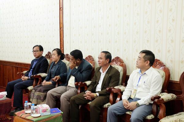 Về phía đại biểu tiếp đón phái đoàn tại trụ sở Liên minh Phật giáo Lào, có Đại đức Văn Xuổng Bút Da Vông, Chủ tịch Liên minh Phật giáo Lào tỉnh Xiêng Khoảng, cùng quý vị đại diện Ban Quản lý Người Việt Nam tại tỉnh Xiêng Khoảng.