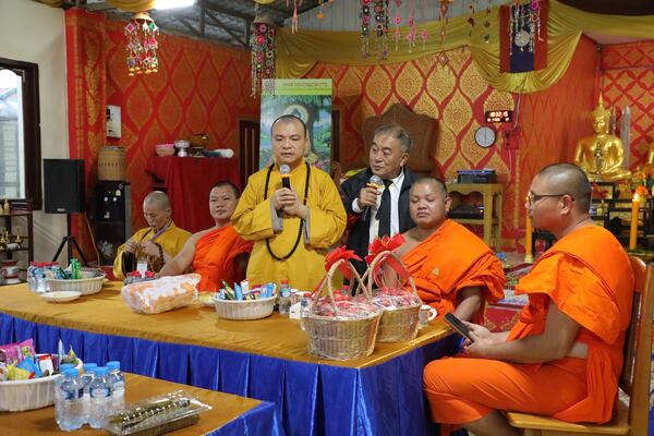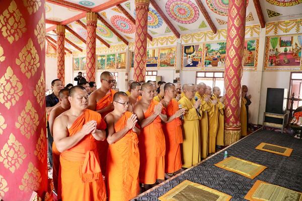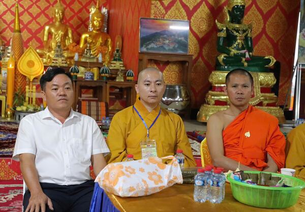 Tại đây, TT.Thích Minh Quang đã trao những phần quà tặng cho quý chư Tôn Đức trong Liên minh Phật giáo Lào và có khóa lễ gia trì theo nghi thức Phật giáo Việt Nam và nghi thức Phật giáo Lào.