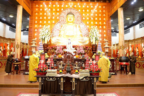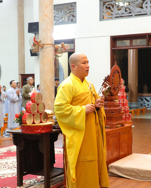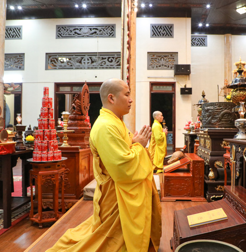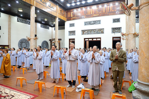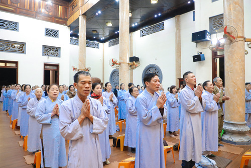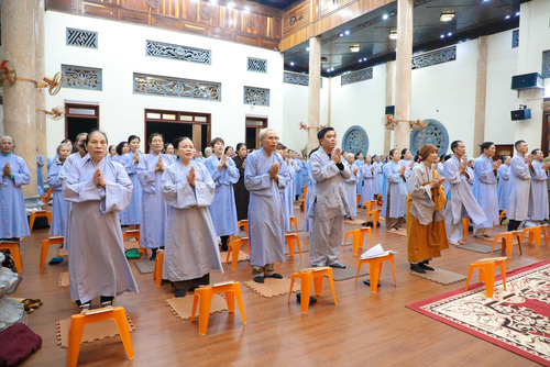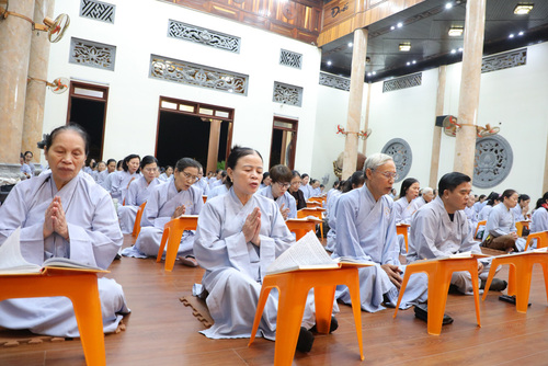 Tiếng chuông trìu mến ngân dài, tiếng mõ mềm như nhắc gọi bao tâm niệm trở về miền tĩnh lặng. Dưới sự hướng dẫn của chư Tăng, đại chúng đồng trì tụng hồng danh chư Phật, mỗi lời kinh cất lên như dòng suối mát gột rửa phiền não, tưới tẩm hạt giống thiện lành.