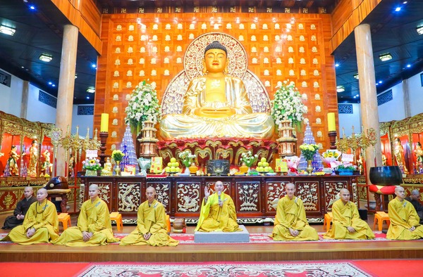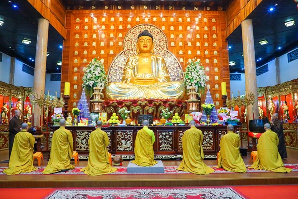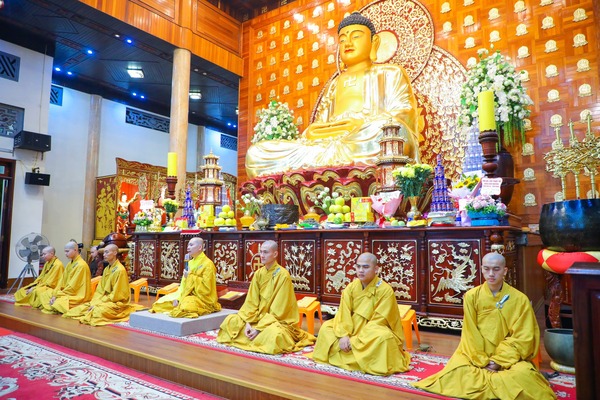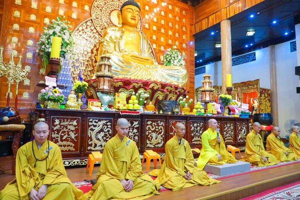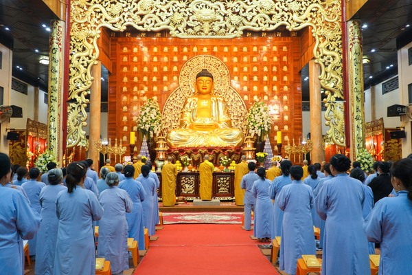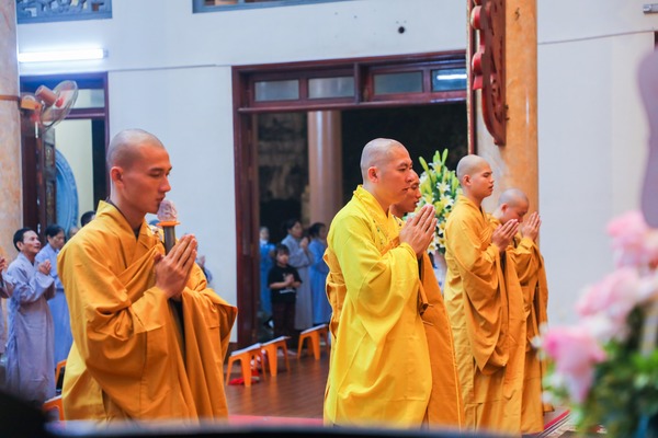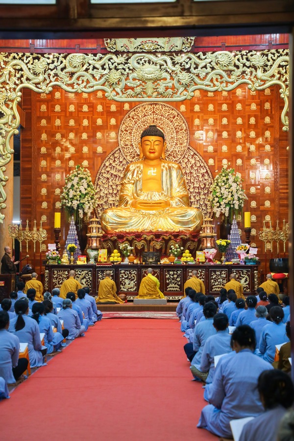Đại Chúng ổn định trang nghiêm cung nghinh Chư Tôn Đức quang lâm Đại hùng bảo điện cùng bước vào khóa lễ.