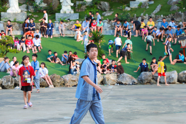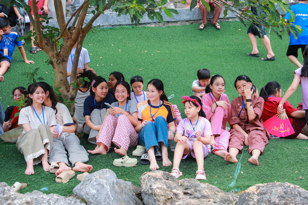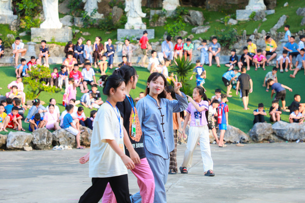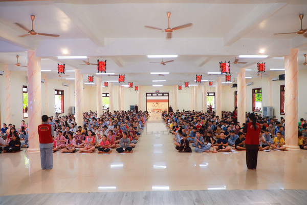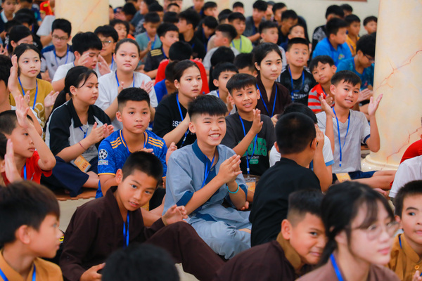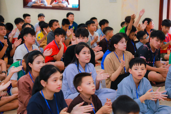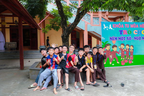 Sau thời công phu sáng, sân chùa trở nên rộn ràng hơn với giờ sinh hoạt tập thể. Những bài hát nhẹ nhàng, những nụ cười hồn nhiên, cùng các trò chơi đơn giản đã làm tan đi khoảng cách lạ lẫm. Các em dần mở lòng, kết nối với nhau bằng ánh mắt trìu mến và sự sẻ chia không cần lời.
