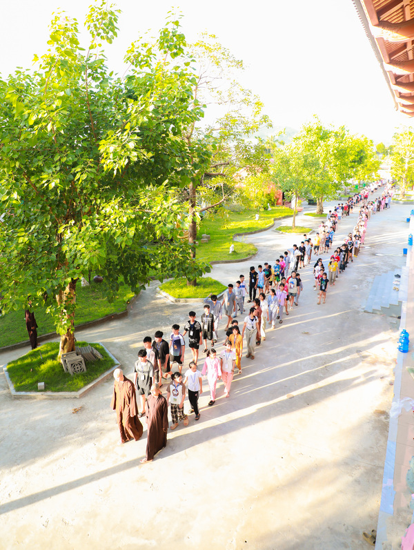 Buổi sớm đầu tiên khép lại trong ánh nắng dịu dàng, để lại trong mỗi em một dấu ấn nhẹ nhàng mà sâu sắc – một ngày mới không ồn ào, không gấp gáp, chỉ còn lại sự bình an lan nhẹ trong từng hơi thở, từng bước chân. Từ khoảnh khắc ấy, hành trình gieo những hạt giống hiểu biết, từ bi và tỉnh thức đã bắt đầu – âm thầm, nhưng vững chãi như những bước chân nhỏ đang dần đi vào con đường của bình an và trí tuệ.