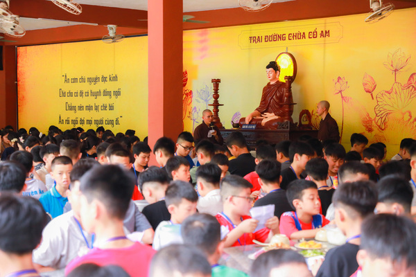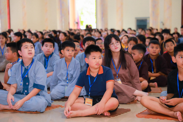 Buổi sáng đầu tiên được sắp xếp một cách nhẹ nhàng, vừa đủ để các em bắt nhịp với môi trường tu học, vừa mang lại cảm giác thân thương, gần gũi. Không còn những âm thanh ồn ã, không còn ánh sáng màn hình chớp nhoáng, thời kinh đầu ngày giúp các em tập trung thân tâm, lắng nghe tiếng chuông, tiếng mõ, và bắt đầu làm quen với hơi thở chánh niệm. Mỗi câu kinh, mỗi hồi chuông như từng giọt sương mát lành, thấm sâu vào tâm hồn thơ dại, giúp các em tạm rời xa sự xao động, trở về với sự yên tĩnh tự nhiên trong chính mình. Dưới ánh sáng dịu dàng, từng gương mặt hiện ra với vẻ ngây thơ như những cánh hoa sen nhỏ đang dần hé nở, đón nhận sự nuôi dưỡng từ những hạt giống của đất trời mang lại và suối nguồn tâm linh của các em đang dần được đánh thức từ những sinh hoạt nhẹ nhàng nơi chốn thiền môn.