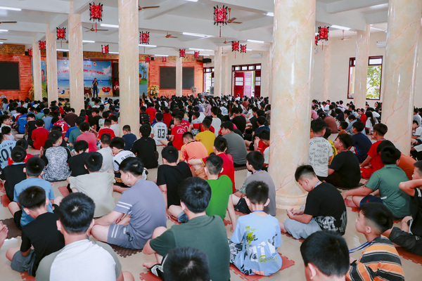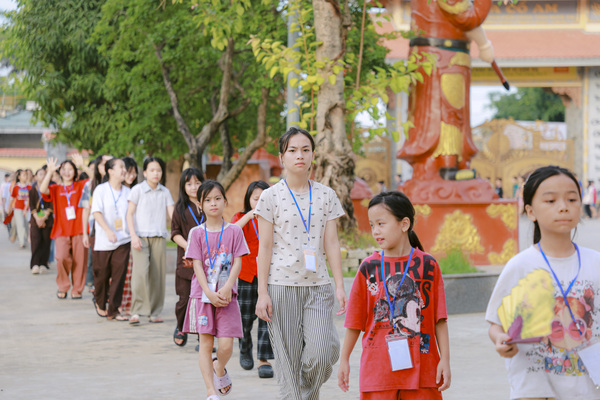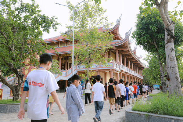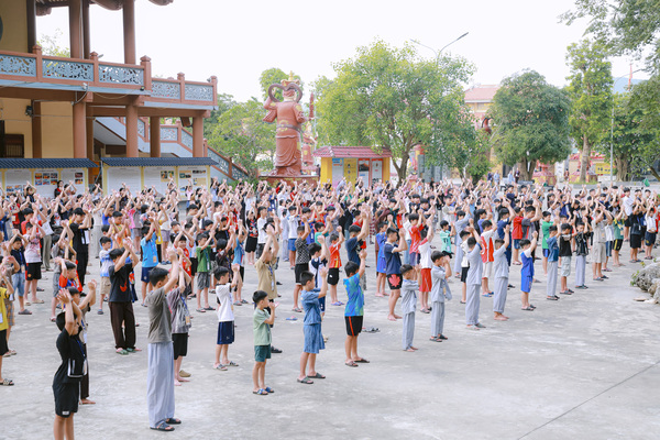 Sáng ngày 21/06/2025, tiếng chuông chùa ngân vang trong làn sương mỏng, đánh thức không chỉ không gian, mà còn khơi dậy sự tỉnh thức nơi những tâm hồn thơ trẻ. Từ những căn phòng nhỏ, các em thức giấc, gấp chăn, chỉnh trang quần áo, rồi nối chân nhau ra sân chùa trong tiết sớm dịu dàng.
