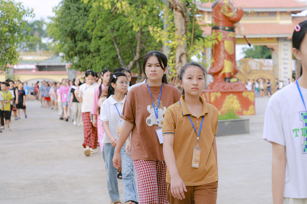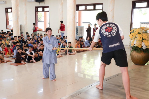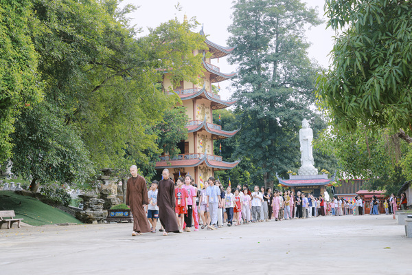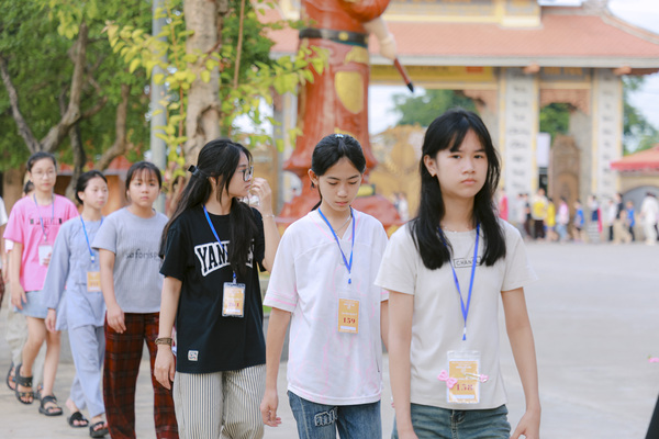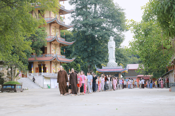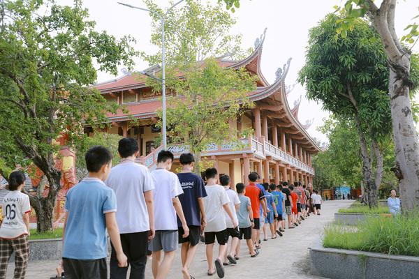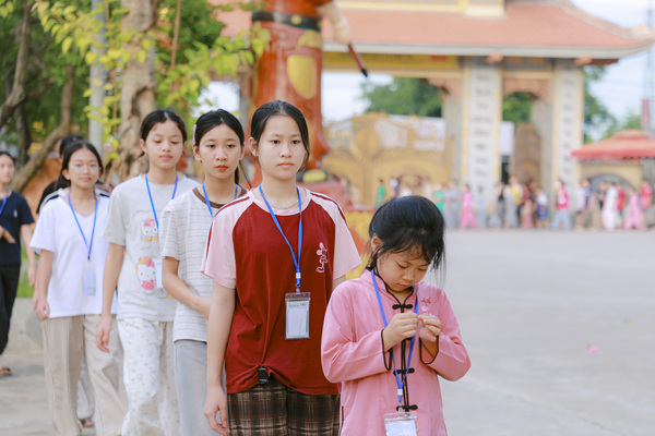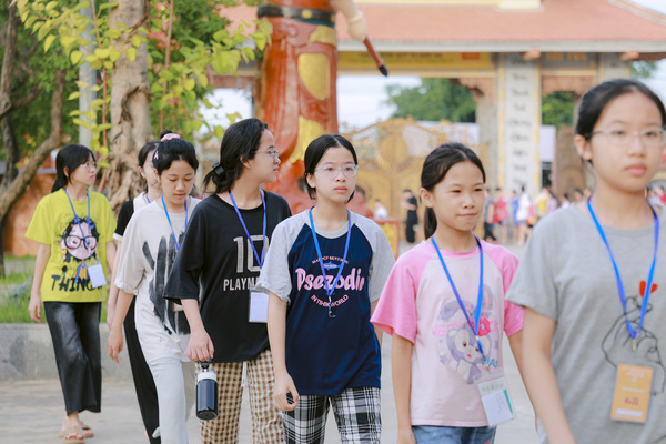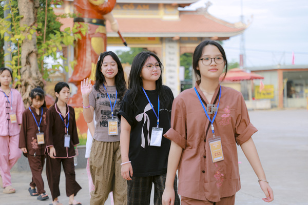 Sau đó, từng bước chân thiền hành được đặt xuống như đặt cả trái tim lên mặt đất – vững chãi, chánh niệm. Các em bước chậm, lặng lẽ nghe tiếng lá rơi, tiếng gió khẽ lay, để rồi chợt mỉm cười khi nhận ra sự tĩnh lặng ấy cũng là một món quà. Mỗi bước đi là một bước trở về với chính mình – không áp lực, không so sánh, chỉ có hiện tại dịu dàng.