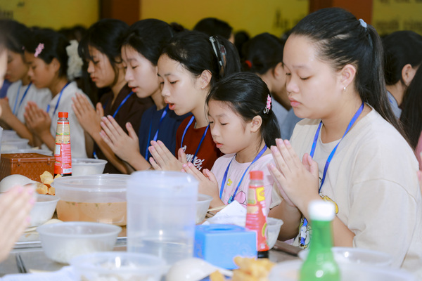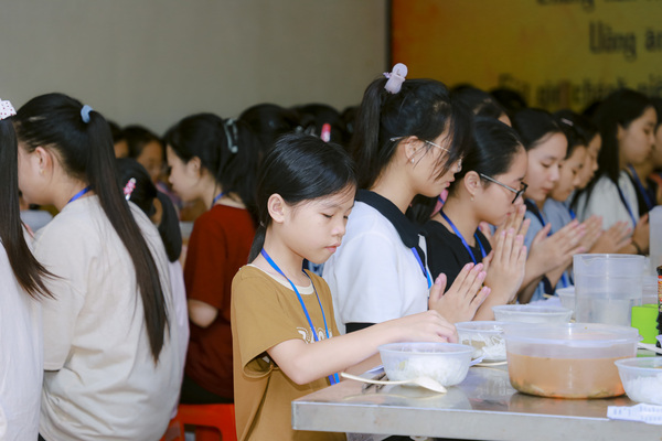 Bữa điểm tâm sáng được dùng trong không khí yên tĩnh. Không trò chuyện rôm rả, không vội vàng xúc ăn, các em học cách nhai chậm, cảm nhận từng vị ngọt của hạt cơm, từng ngụm nước ấm. Những điều tưởng như nhỏ bé lại dạy các em biết ơn, trân trọng và sống sâu sắc hơn.