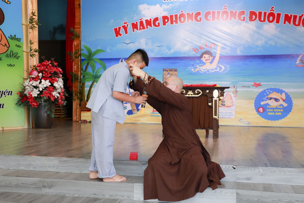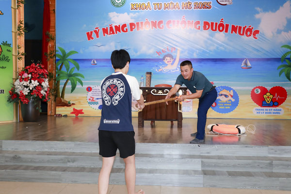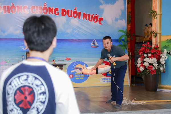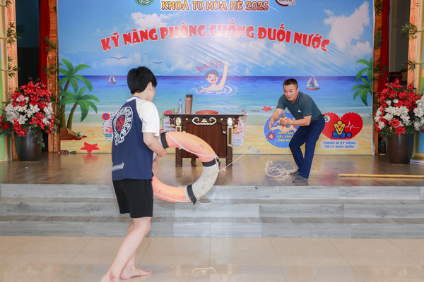 Đặc biệt trong buổi sáng hôm nay, lớp kỹ năng đuối nước được tổ chức như một làn gió mới – thiết thực mà đầy yêu thương. Không chỉ là cách nổi, cách thở khi xuống nước, mà còn là những lời nhắn gửi về việc giữ bình tĩnh, cách ứng xử trong nguy hiểm. Các em chăm chú lắng nghe, thực hành nghiêm túc, bởi ai cũng hiểu: để tự bảo vệ mình cũng là biết yêu thương bản thân.