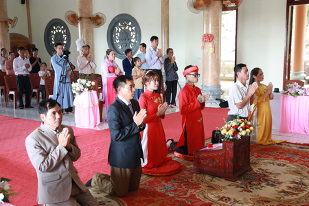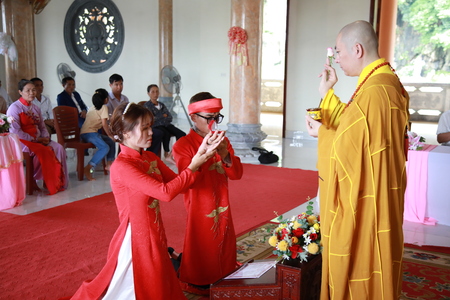 Kết thúc buổi lễ xin chúc đôi bạn trẻ sống trăm năm hành phúc và luôn mong rằng khi các bạn đã nguyện đến với nhau cũng sẽ nguyện xây dựng nên những gia đình Phật tử, bởi khi mỗi một gia đình hạnh phúc, bố mẹ yêu thương nhau, quan tâm đến con trên tinh thần lời Phật dạy thì đó chính là nền tảng quan trọng để đẩy lùi các tệ nạn xã hội, mang đến cho xã hội một đời sống lành mạnh, tròn đầy tình thương.