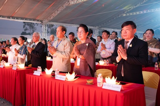 Trong không khí trang nghiêm và xúc động, chư Tôn đức Tăng Ni cùng đại biểu hai nước Việt Nam – Lào và đông đảo Phật tử, nhân dân đã trang nghiêm tổ chức Lễ thắp nến tri ân tưởng niệm các Anh hùng Liệt sĩ Việt Nam – Lào tại Đền thờ Anh hùng Liệt sĩ Việt – Lào, Chùa Hữu Nghị, thuộc khu vực Cánh Đồng Chum, tỉnh Xiêng Khoảng, nước Lào.