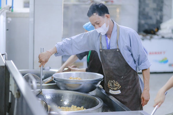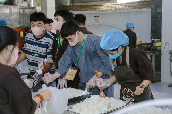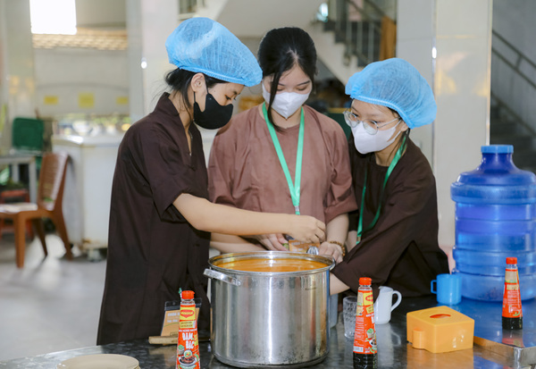 Những bữa cơm chay thanh đạm, ấm áp, mà đội ngũ đầu bếp và trai soạn đã thức khuya dậy sớm, miệt mài chuẩn bị từng món ăn với cả tấm lòng. Mỗi món ăn không chỉ nuôi dưỡng thân thể mà còn chứa đựng tình yêu thương, là nguồn sức mạnh giúp các khóa sinh an tâm tu học.
