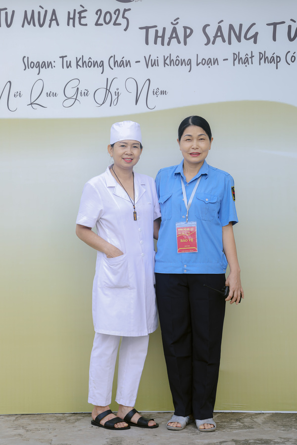 Cùng với tận tâm dẫn dắt của ban đạo tràng; sự chu đáo, tận tình của các cô y tế, bác sĩ luôn túc trực chăm sóc sức khỏe; cùng sự an toàn, bình yên.