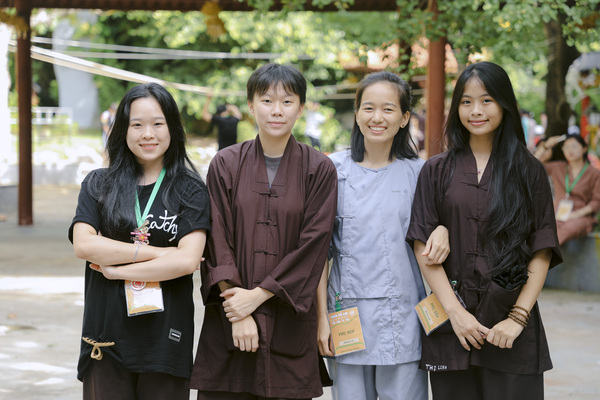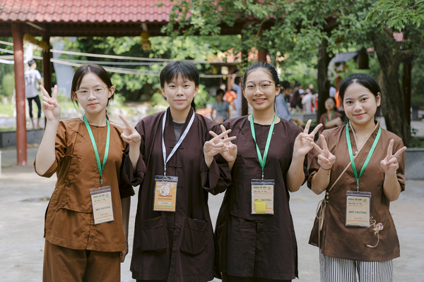 Các anh chị tình nguyện viên – những người tận tâm dìu dắt các khóa sinh từ những bỡ ngỡ ban đầu cho đến khi khóa tu khép lại. Không chỉ là người bạn đồng hành, cầu nối ấm áp, chu đáo hỗ trợ quý thầy và các gia đình, các anh chị còn tỉ mỉ giúp đỡ các bạn vượt qua mọi rào cản, nhanh chóng hòa nhập và cảm nhận sâu sắc giá trị của từng bài học.