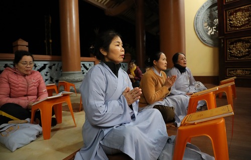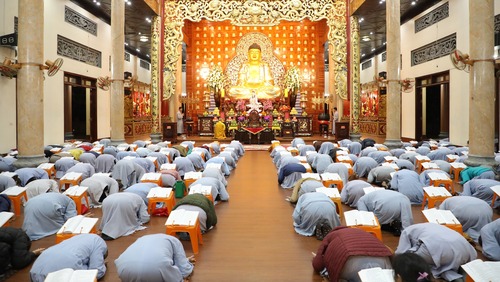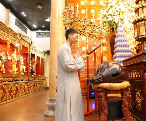 Tối 30/09 âm lịch, chùa Cổ Am trang nghiêm cử hành khóa lễ tụng kinh Sám hối – cầu nguyện theo hạnh nguyện Đức Phật Dược Sư. Không gian đạo tràng chìm trong tiếng chuông trầm tĩnh; mỗi câu kinh, lời kệ được cất lên như dòng suối mát rửa sạch phiền não, giúp thân tâm được thư thái và an ổn.