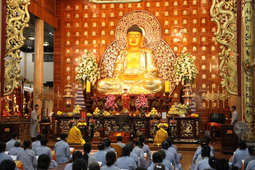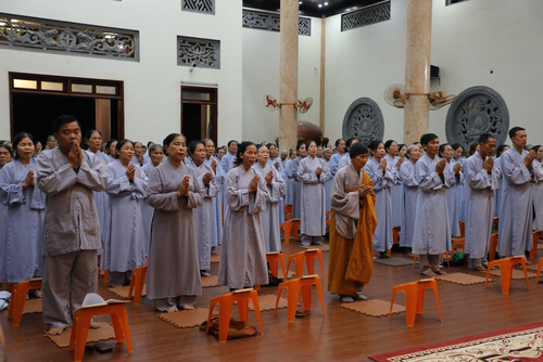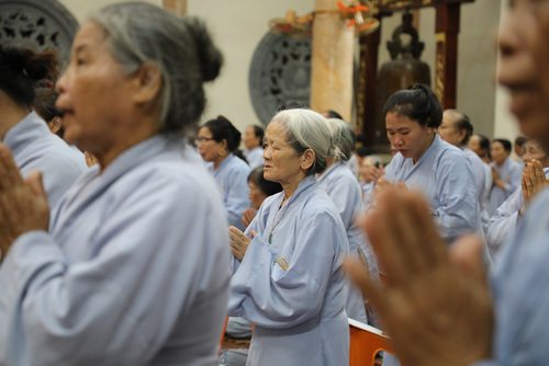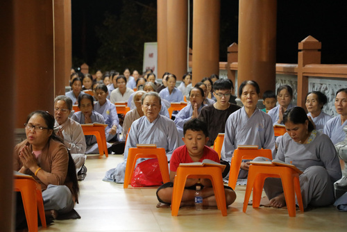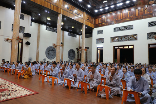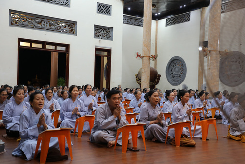 Ngay từ những phút đầu buổi lễ, đại chúng đã cùng nhau hướng tâm về Tam Bảo, lắng lòng trong từng tiếng chuông, từng lời kinh sám hối. Mỗi câu kinh, mỗi lạy xuống là một cơ hội để nhìn lại chính mình, buông bỏ những lỗi lầm, những phiền não chất chứa, và khơi dậy ánh sáng từ bi trong tâm.