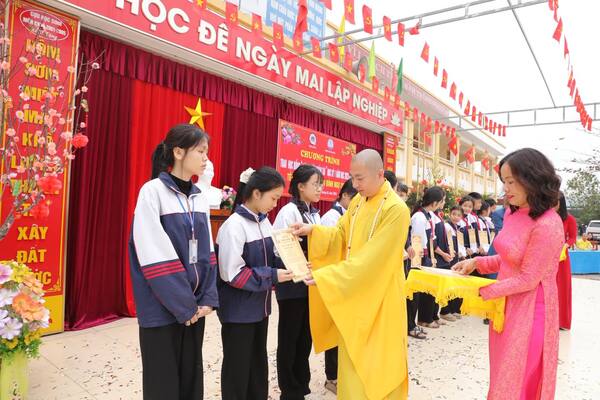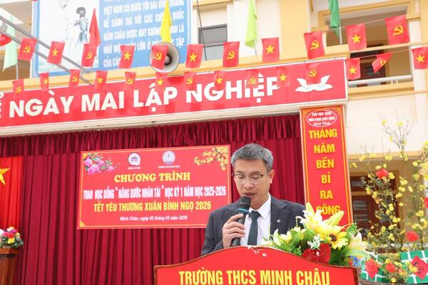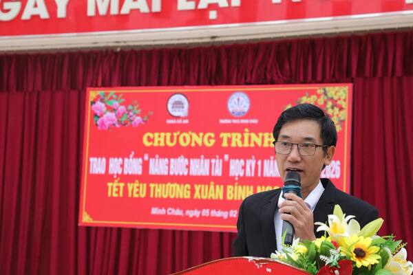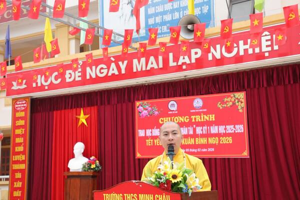 Sáng ngày 05/02/2026, tại Trường THCS Minh Châu, Đại đức Thích Tâm Thành đã quang lâm tham dự và trực tiếp trao tặng học bổng “Nâng Bước Nhân Tài” cho các em học sinh có thành tích học tập xuất sắc trong học kỳ vừa qua.
