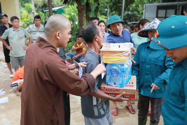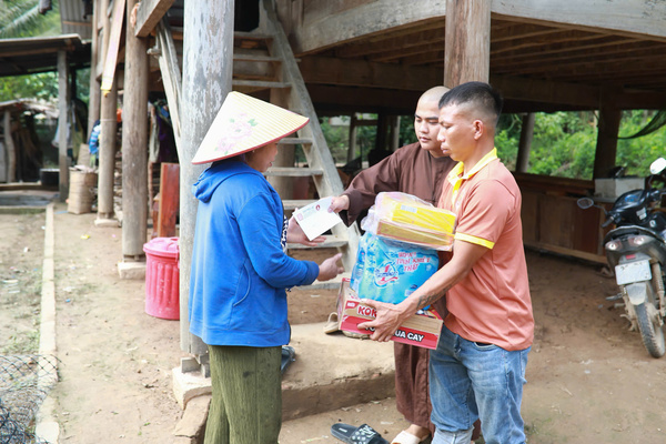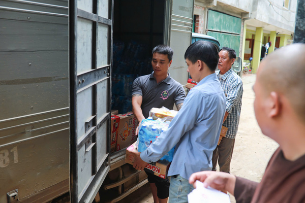 Tối ngày 26/7/2025 dưới sự hướng dẫn của Đại đức Thích Tâm Thành, đoàn từ chùa Cổ Am đã vượt qua hành trình dài hun hút đèo dốc, mang theo những phần quà tuy giản dị nhưng chứa đựng cả tấm lòng. Những bao gạo, thùng mì, chai nước, hộp sữa… không chỉ là nhu yếu phẩm, mà còn là tình cảm ấm áp từ những người xa lạ nhưng sẵn sàng sẻ chia.